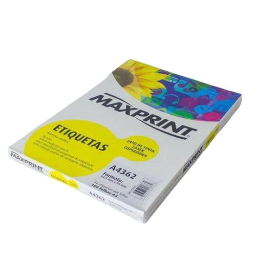 Etiqueta Auto Adesiva Papel A4 16 Etiquetas por Folha Pacote com 100 Folhas Ref. A4362Para impressora: Jato de tinta, Laser e Copiadora.Formato: A4.Modelo: A4362.Formato da Etiqueta: 33,9 x 99 mm.Quantidade por Folha: 16 Etiquetas.Fabricante: Maxprint.Quantidade: 100 Folhas