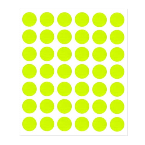 Etiqueta Bolinha Controle Amarelo Fluorescente 6mm Rolo C/1000 Etiquetas Etiqueta Bolinha Controle Amarelo Fluorescente 6mm Rolo C/1000 Etiquetas Etiquetas coloridas auto-adesivas, multi-usoAdesivo de alta qualidade Utilizadas em promoções, identificação, sinalização de defeitos, organização/separação de produtos por cores, fechamento de convites e envelopes Muito utilizada por confecções e demais setores Industriais, Hospitalar, Controle de Qualidade, Logística, Transportadoras, na identificação de mão de obra externaUso manual 16 cores diferentes Cores disponíveis: Amarelo, Amarelo Flúorescente, Azul Claro, Azul Escuro, Branco, Cinza, Laranja, Laranja Flúorescente, Marrom, Verde Escuro, Verde Flúorescente, Vermelho, Pink, Preto, Rosa, Roxo, Etiqueta de Bolinha AdesivaLargura da Etiqueta 60mm 0,6cm Altura da Etiqueta 60mm 0,6cm Material: Papel adesivo colorido com adesivo à base de borracha e resinaQuantidade por Rolo 1000 EtiquetasOrigem Nacional ATENÇÃOAs cores que aparecem no monitor podem não corresponder exatamente às cores impressas devido à configuração do mesmo como: contraste, brilho, exposição e saturação de cores. Servem, portanto, apenas de referência EmbalagemEtiqueta Bolinha Controle Amarelo Fluorescente 6mm Rolo C/1000 Etiquetas Garantia3 Meses Contra Defeito de Fabricação