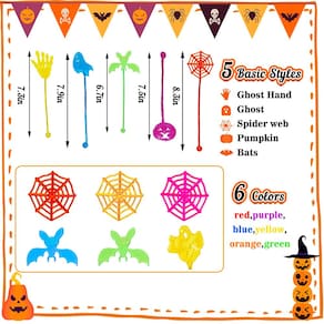 -?50 unidades de mãos adesivas?Você receberá 50 peças de brinquedos pegajosos em 5 estilos básicos, incluindo mão fantasma, fantasma, teia de aranha, abóbora, morcegos; esses brinquedos incluem 6 cores (vermelho, roxo, azul, amarelo, laranja, verde) para tornar sua festa de Halloween mais brilhante e divertida.