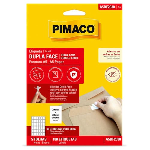 - Contém 5 folhas A5 com 180 etiquetas ao todo