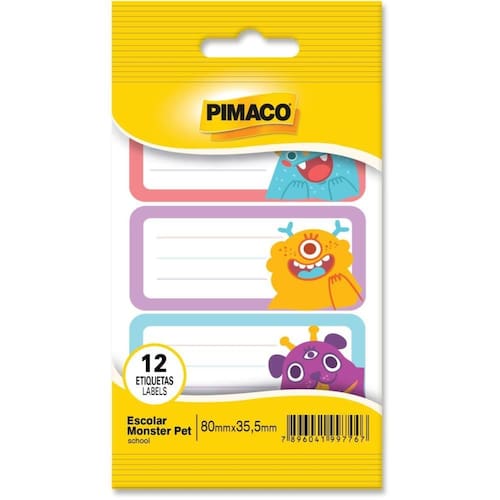 Etiqueta Escolar Decorada Monster Pet 80 x 35,5mm 12etiquetas