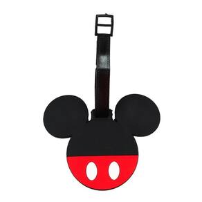Etiqueta de identificação de bagagem no formato do rosto do Mickey com cores característico e 13,5 x 10 cm de dimensão. Interior com pequena folha para preencher nome, endereço, telefone e email. Material: silicone Marca: Não Informado