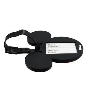 Etiqueta de identificação de bagagem no formato do rosto do Mickey com cores característico e 13,5 x 10 cm de dimensão. Interior com pequena folha para preencher nome, endereço, telefone e email. Material: silicone