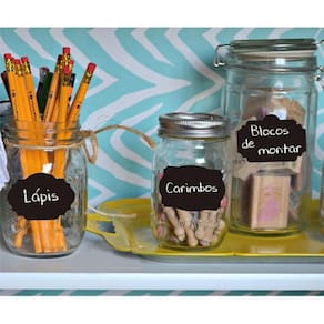 Etiqueta Quadro Negro Adesivo Para Identificação Baleiro 16Und Os Nossos Adesivos de Parede são impressos com tinta Eco-Solventes com qualidade fotográfica em Vinil Autocolante, o que dispensa o uso de colas e evita sujeiras. São ideais para quem quer fazer mudanças em qualquer ambiente de sua casa sem gastar muito, além do seu preço acessível dispensa a contratação de profissionais, já que você mesmo a pode fazer a instalação. Mantenha sua casa organizada com nossas etiquetas quadro negro O valor inclui um pacote com 16 unidades. Medida de cada etiqueta: 6,5cm x 4,5cm. Etiquetas resistentes a água. Etiquetas super práticas. Elas são perfeitas para vidro, plástico, metal ou madeira. Cole em frascos, organize sua oficina ou simplesmente decore sua casa com bom gosto E o melhor Pode escrever, apagar e voltar a escrever quantas vezes quiser seus filhos vão adorar. Marca: Não Informado