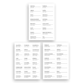 3 Cartelas com Etiquetas Adesivas Para Temperos, Mantimentos e Despensa Adesivos Temperos: Açafrão, Cominho, Manjerona, Alecrim, Cravo, Noz Moscada, Alho, Cúrcuma, Orégano, Anis, Curry, Páprica, Canela, Gengibre, Pimenta, Chimichurri, Lemon Pepper, Salsa, Coentro, Louro, Sálvia, Colorau, Manjericão, Tomilho. Adesivos Mantimentos: Açúcar, Farinha, Arroz, Feijão, Aveia, Granola, Achocolatado, Lentilha, Biscoito, Leite em Pó, Café, Massa, Cereal, Milho de Pipoca, Espaguete, Sal. Adesivos Despensa: Bebidas, Farinhas, Biscoitos, Grãos, Café da Manhã, Guloseimas, Cereais, Leites, Condimentos, Massas, Enlatados, Molhos, Estoque, Pães, Descartáveis, Petiscos.