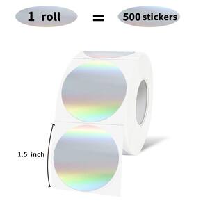 Yeachlaing Etiquetas adesivas térmicas redondas de 3,8 cm - [Tamanho do produto] - Você receberá 500 rolos de etiquetas de prata holográfica de 1,5 polegadas (3,8 cm) de diâmetro - [Fácil de usar] - As etiquetas são fáceis de descascar do rolo, adequadas para a maioria das impressoras térmicas, e a cola é pegajosa o suficiente para colar em qualquer lugar que você precisar. - [Use Advantage Collection] - Papel de etiqueta térmica com impressão nítida, autoadesivo forte, à prova d'água, à prova de óleo e escrita, bom assistente em seus negócios e vida. - [Ampla aplicabilidade na vida] - A etiqueta térmica pode ser usada para inventário, etiquetas de lembrete, etiquetas classificadas, etiquetas de tamanho, etiquetagem de números de laboratório, classificação de sapatos, bolsas e roupas, etc. - Ótimo serviço: garantimos a qualidade e versatilidade de nossas fitas de etiquetas térmicas. Sua satisfação é nossa busca final.