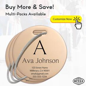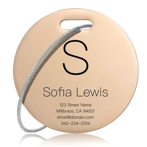 Etiquetas de bagagem de aço inoxidável personalizadas: personalize suas malas, mochilas e bolsas com seu texto (ouro rosa) - Etiquetas de metal para bagagens: construção de aço inoxidável resistente para maior durabilidade. - Fácil de reivindicar: vários padrões de etiquetas de bagagem, fácil de localizar. - Fácil de fixar: fixação segura do cinto para evitar descolamento acidental. - Gravação a laser: Gravação a laser dupla face para um visual premium. - Presentes perfeitos: ideal para pais, amigos, irmãos e muito mais.