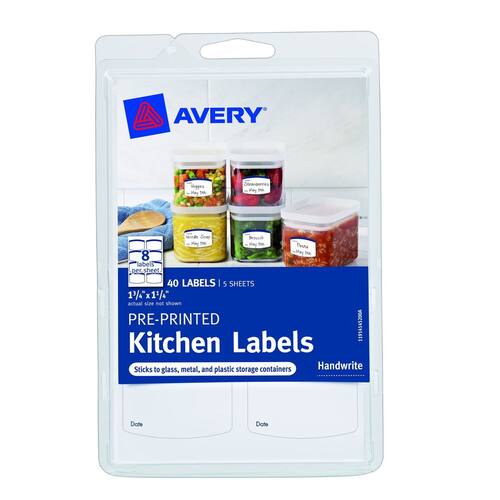 Avery Etiquetas de cozinha pré-impressas, borda azul, 4 x 3 cm, pacote com 40 (41452)