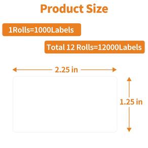 - ??Dimensões?: 2-1/4 x 1-1/4 polegadas Comprimento do papel de etiqueta térmica direta em branco: 2,25 polegadas x 1,25 polegadas.