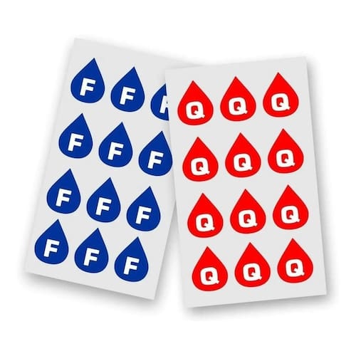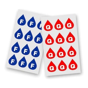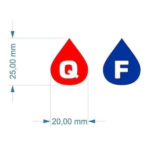 Etiquetas para registro quente e frio - produto a prova d´água contém um conjunto de duas cartelas com 18 unidades no total, sendo 9 q + 9 f de 4x3cm cada etiqueta. - fabricado em vinil pvc - polimérico calandrado isento de cinza - produzido pelo processo de recorte digital não é impressão. - super resistente - alta qualidade - cores vivas - não agride a superfície - isento de cinza - pode ser aplicado em qualquer superfície lisa
