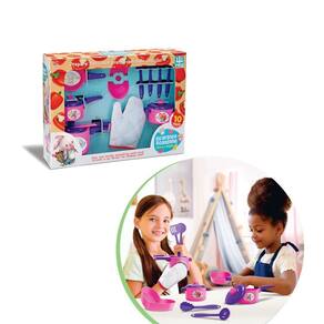 Embora a cor dominante seja rosa, o kit é ideal para todas as crianças que gostam de brincar de cozinhar, estimulando a imaginação e o faz de conta.