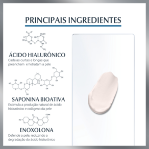 Creme Anti-Idade Eucerin Hyaluron-Filler Diurno FPS 30 possui cadeias curtas e longas de Ácido Hialurônico e Saponina Bioativa, que aumentam a produção natural de colágeno, estimulam a renovação celular e preenchem as rugas mais profundas. Combate os sinais de envelhecimento e possui FPS 30 com proteção UVA/UVB que previne o envelhecimento precoce causado pelos raios solares. Sua fórmula foi clínica e dermatologicamente testada, contém textura leve e de rápida absorção que penetra nas camadas mais profundas da pele e suaviza as linhas de expressão, deixando a pele com aparência mais jovem.