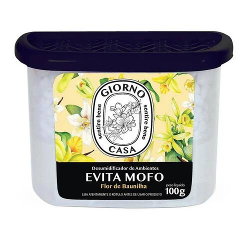 Evita Mofo Flor de Baunilha 100g Giorno Casa O Evita Mofo Giorno Casa protege o ambiente dos efeitos da umidade como deterioração de móveis e objetos , absorvendo as partículas de água presentes no ar e prevenindo assim a proliferação de fungos e mofo bem como as doenças de trato respiratório ocasionadas por estes microorganismos. Ideal para áreas fechadas ou com pouca circulação de ar como armários, gavetas, baús, dispensas, cofres e outros. Evita Mofo Giorno Casa aromatiza suas roupas enquanto desumidifica. Aroma Flor de Baunilha. Modo de uso: Limpe o local antes de colocar o Evita Mofo; Remova a tampa da embalagem e retire o lacre de alumínio; Tampe a embalagem e coloque no local, Pronto, seu ambiente agora ficará protegido e perfumado. À um clique de você, a Beleza traz os produtos mais amados na área da Beleza, Perfumaria, Cuidados Pessoais e Aromáticos. Trabalhamos apenas com produtos acompanhados de . Garantimos a melhor experiência de compra aos nossos clientes, sempre com a qualidade e o preço justo que você merece Boas compras ; Marca: Não Informado