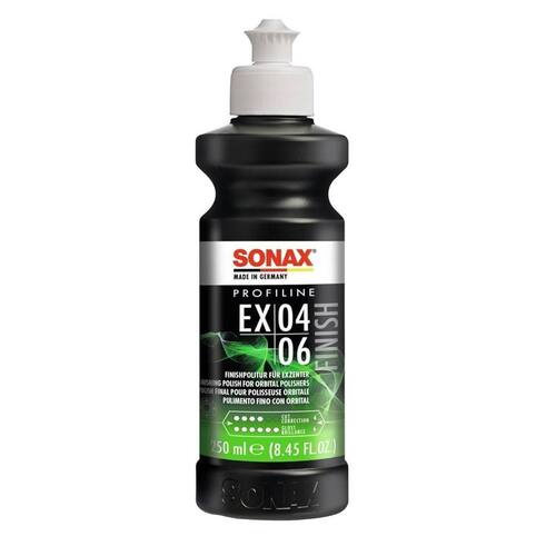 Ex 04-06 composto polidor corte/refino sonax 250ml composto polidor sem silicone com função dupla-ação, fornecendo um acabamento perfeito e um brilho profundo. É um composto polidor corte/refino sonax 250ml é um composto dupla-ação com alto desempenho, formulado à base d'água não contendo silicones, solventes ou petróleo, sendo capaz de fornecer um corte médio com acabamento perfeito e brilho profundo. Pois os abrasivos do composto polidor se quebram rapidamente em uso para formar um resíduo de polimento progressivamente mais fino, reduzindo o poder de corte, porém aumentando o poder de acabamento. Ex 04-06 composto polidor corte/refino sonax 250ml permite um bom tempo de trabalho na peça durante o processo de refino e lustro, gerando baixa quantidade de pó e facilitando a limpeza após seu trabalho. Tendo sua fórmula sem silicones, ceras ou solventes tóxicos que garante a remoção de defeitos permanente e não temporária. Ex 04-06 composto polidor corte/refino sonax 250ml é um exemplo de excelência ao se falar de compostos dupla-ação, sendo capaz de remover marcas de lixa grão 2000 com extrema facilidade fornecendo um acabamento de excelente qualidade utilizando apenas 1 ou 2 boinas, realizando um ou dois processos com o mesmo produto, podendo ser utilizado para resolver os problemas de praticamente todos tipos de verniz. Ex 04-06 composto polidor corte/refino sonax 250ml preza por agilizar o processo de refino e lustro em apenas uma etapa, facilitando o processo de polimento e removendo de forma eficaz as marcas deixadas pelo polidor de corte, além de fornecer acabamento perfeito e brilho profundo. Ex 04-06 composto polidor corte/refino sonax 250ml tem seu melhor uso com politriz roto orbital e boinas de espuma, porém pode também ser utilizado com politriz rotativa.