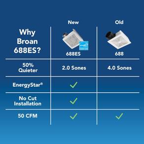 - Grelha moderna atualizada: grades brancas mais brilhantes se misturam para combinar com a tinta de teto mais comum. Broan 688. Este ventilador possui orelhas de montagem dobráveis e capa de grelha fácil de remover com molas.