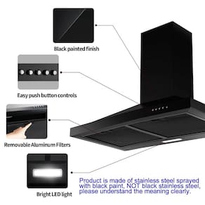 - ?CAPUZ DE AÇO INOXIDÁVEL PRETO GD1760BPA?Feito de aço inoxidável de grau 430 premium, corpo com acabamento pintado de preto + filtros de graxa de alumínio preto, exaustor de cozinha de alta qualidade. Os filtros de 5 camadas são removíveis, muito fáceis de limpar. Observe que o material do exaustor é de aço inoxidável pulverizado com tinta preta, não aço inoxidável preto, por favor, entenda o significado claramente.