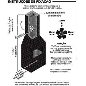 - Altura mínima recomendada: para instalação a partir de 1,5Metros da base da churrasqueira (brasa)