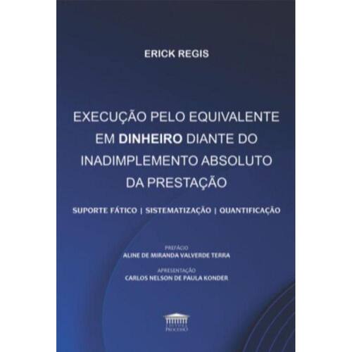 Erick Regis busca demonstrar que a execução pelo equivalente encerra não apenas remédio autônomo, mas natural e inerente ao ordenamento jurídico brasileiro, notadamente tendo em vista os termos do art. 475 do Código Civil, que franqueia ao credor a possibilidade de, diante de inadimplemento absoluto, optar entre a resolução ou o cumprimento do contrato, não já por meio da execução específica, mas sim via execução pelo equivalente. (...) Fruto de sua dissertação de mestrado no Programa de Pós-graduação da Faculdade de Direito da UERJ, defendida perante Banca Examinadora que tive a honra de compor juntamente com os ilustres professores Carlos Nelson de Paula Konder (UERJ) e Giovanni Ettore Nanni (PUC-SP), a obra oferece a estudantes, estudiosos e aplicadores do direito, como se nota, bases teóricas e práticas sólidas para a adequada compreensão e o correto manejo do instituto, a ostentar inegável relevância. Boa leitura! Aline de Miranda Valverde Terra A figura da execução pelo equivalente constitui, portanto, remédio extremamente útil e relevante para as relações contratuais, de modo a tutelar o credor que, posto tenha perdido o interesse na obrigação inadimplida, ainda encontra utilidade no restante do contrato. O trabalho de Erick Regis oferece preciosa sistematização de seus requisitos e de seus efeitos. Estruturado em três partes, concilia a didática para os não iniciados no debate com a profundidade teórica que o tema exige: primeiro estabelece as premissas para o reconhecimento da possibilidade de execução pelo equivalente, em seguida sistematiza os diversos aspectos do instituto, para, ao final, dedicar-se à minuciosa análise de como fixar a quantificação do valor a ser pago. Diante disso, embora tradicionalmente as monografias jurídicas voltem-se ou a difundir um instituto junto ao grande público dos operadores do direito ou a verticalizar um debate teórico entre pesquisadores e acadêmicos, ?Execução pelo equivalente em dinheiro diante do inadimplemento absoluto da prestação: suporte fático, sistematização e quantificação? tem o grande mérito de fazer os dois ao mesmo tempo. Carlos Nelson de Paula Konder
