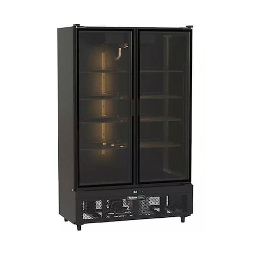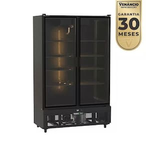 Expositor de bebidas na cor preta, com 2 portas de fechamento automático. Ideal para supermercados, restaurantes, padarias, lancherias, entre outros.