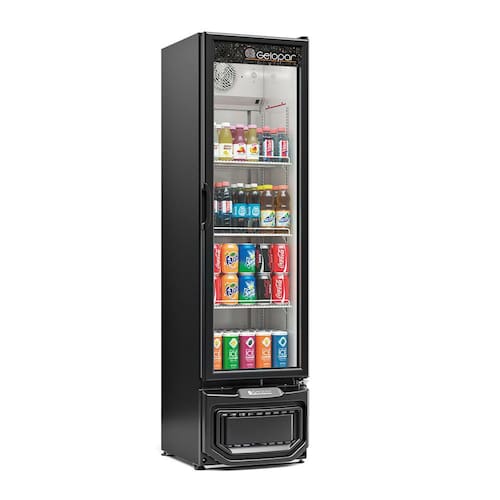 Expositor Vertical GPTU230 Gelopar: indicado para resfriamento, conservação e exposição de sucos, laticínios e bebidas como água, mate, iogurte, isotônico, refrigerante, etc. Geladeira expositora com grande capacidade (228 L), capaz de armazenar 250 latas 350ml, ou 150 long necks 350ml ou 125 garrafas pet 600ml. Refrigeração por ar forçado com placa fria. Degelo manual. Revestimento interno em aço pré-pintado branco e externo em aço pré-pintado disponível nas opções preto ou branco. Controle de temperatura por termostato. Iluminação interna em LED . Pés niveladores. Prateleiras aramadas de 3 níveis reguláveis e inclináveis. Porta de vidro duplo temperado baixo emissivo e com fechamento automático, evitando que o gás frio escape, mantendo a temperatura interna e evitando desperdício de energia. TEMPERATURA: +1 a +7ºC. CAPACIDADE: 228L. PESO: 69Kg. CONSUMO: 1,4 kWh/dia. DIMENSÕES EXTERNAS (CxAxL): 48x179x53cm. Refrigerador Vertical GPTU230 Gelopar é na Atau. Equipamento certificado conforme Portaria Inmetro nº 371/2009
