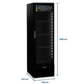 Expositor De Bebidas Slim Vertical All Black Vb28rh Metalfrio Refrigerador 343 Litros Preto 110v Refrigerador Expositor Slim 343 Litros VB28 All Black Metalfrio. Ideal para bares, restaurantes, padarias, academias, farmácias, lan houses, mercados, lojas de conveniência e similares. Perfeita conservação e exposição para refrigerantes, sucos e águas. Sistema de Degelo Frost Free: degelo automático. Controle de Temperatura: Termostato eletro-mecânico. Faixas de Temperatura: Refrigerador 2C / 8C. Prateleiras: 3 prateleiras reguláveis. Desempenho profissional: sistema de refrigeração com fluxo de ar contínuo. Gás Ecológico. Tanque Termoformado: desenvolvido em novo material, deixando seu expositor mais leve e com melhor acabamento. Iluminação em LED. CAPACIDADE: 343 Litros. TEMPERATURA: Refrigerador +2/+8C. ARMAZENAMENTO: 451 Latas 269ml, 324 Latas 350ml, 252 Latas 473ml, 245 Garrafas 355ml, 100 Garrafas 600ml, 75 Garrafas 1l, 158 Pet 600ml e 48 Pet 2l. PORTAS: 1. PRATELEIRAS: 3. PESO: 88Kg. DIMENSÕES EXTERNAS(CxAxL): 52,5x188,6x62,2cm. Com os Selos de Qualidade ISO 9001 e de Gestão Ambiental ISO 14001. Refrigerador Expositor Slim 343 Litros VB28 All Black Metalfrio é na Atau. Marca - Metalfrio Modelo - VB28RH Capacidade - 343 Litros Frente - 52,5cm Altura - 188,6cm Profundidade - 62,2cm Temperatura - Refrigerador +2 / +8C Peso - 100Kg Portas - 1 Porta Prateleiras - 3