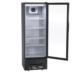 Porta de Vidro Duplo Low-E, Puxador em Aço Pintado em Epóxi, Controle de Temperatura Mecânico Regulável de 0ºC até 5ºC, Iluminação Interna em LED na Cor Branca, Quatro Prateleiras Reguláveis, com Sistema de Refrigeração por Compressor.