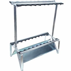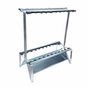 Expositor De varas - Vareiro P/ 20 varas - Usar no Chão TAMANHO:56x25x40 AxLx C? Feito em Alumínio, encostos em borrachas e Apoio em ferro pintado IDEAL PARA GUARDAR SUAS TRAIAS EM CASA!!! Pode ser desmembrado e instalado em paredes ou superfícies planas Observação: Não acompanha Vara! undefined