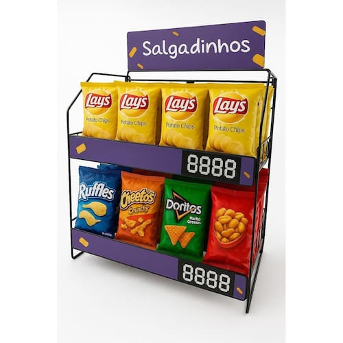 Display Expositor com ganchos para Mercado Mercearia Porta Tempero, Celular, Encartelados com Ganchos Serve para comércios e mercearias em geral, como colocar bijuterias, chaveiros, óculos, acessórios, brinquedos, eletrônicos, petiscos, encartelados em geral. Pode ser em Padarias, Mercados, Conveniências, Petshops, Posto de Combustível, entre outros. Material: Ferro Cor: PRETO Tamanho: Comprimento 45 cm Largura 25 cm Altura 51,5 cm Tamanho da Placa para personalização: 45 cm x 11 cm do vendedor: 2 meses Marca: Não Informado Ean: 07896067213230