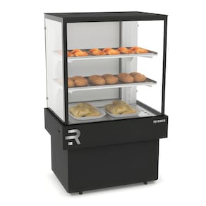 Características Técnicas: Sistema de aquecimento: Por resistências elétricas Tipo: Expositor Estufa Quente Confeitaria | Salgados Temperatura Trabalho: Aproximadamente 60 °C (controle termostático) Finalidade: Exposição e conservação aquecida de salgados, doces, tortas e confeitaria em geral Iluminação: LED Vidros temperados simples Gabinete interno | externo: Aço galvanizado pintado (fundo interno em aço inox) Tampo aproveitável | Portas traseiras bater: Aço galvanizado pintado Estrutura externa | estrutura interna: Aço galvanizado pintado Capacidade: 6 bandejas aço inox Pés reguláveis