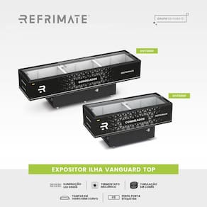 Expositor Ilha, Vanguard Top, Congelados, Resfriados, Vidro Semicurvo, 3,00m, EIVT 3000, Refrimate, 127V, Equipamento de Refrigeração, Expositor de Alimentos, Expositor para Supermercado, Expositor para Congelados, Expositor para Resfriados, Refrimate EIVT 3000