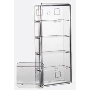 Um expositor com tampa para proteção e exposição de miniaturas 1:64, que é modular pois possui encaixes na lateral esquerda e na parte superior para montar uma peça na outra, e pode ser utilizado para organização em geral. O produto possui 05 nichos (cabem até 05 miniaturas 1:64 por produto).