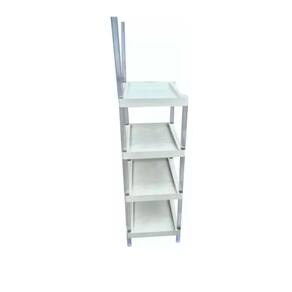 - 4 prateleiras de plastico injetado com 49,5x40cm e de area util interno 49x30,5cm . - 1 testeira com 45x20cm - 12 tubos de 31cm para os vãos das prateleiras vão 27,5cm - 2 tubos de 40cm com rasgo testeira - 4 tubos de 10cm pés