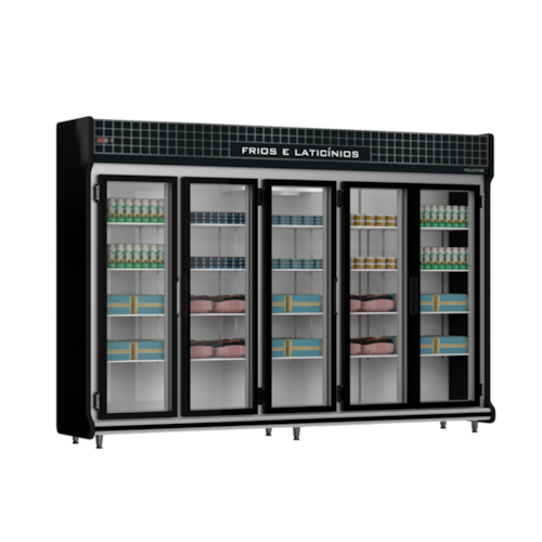 O Expositor Refrigerado Auto Serviço Polofrio 3,00m 5 Portas 2157 220v é a escolha ideal para a conservação e exposição de frios e laticínios. Com sistema de refrigeração por ar forçado e controlador digital com degelo automático, ele mantém a faixa de temperatura entre +3°C e +7°C, garantindo a qualidade dos produtos. Ideal para supermercados, padarias e comércios de autoatendimento, este expositor Polofrio combina eficiência energética e design funcional.