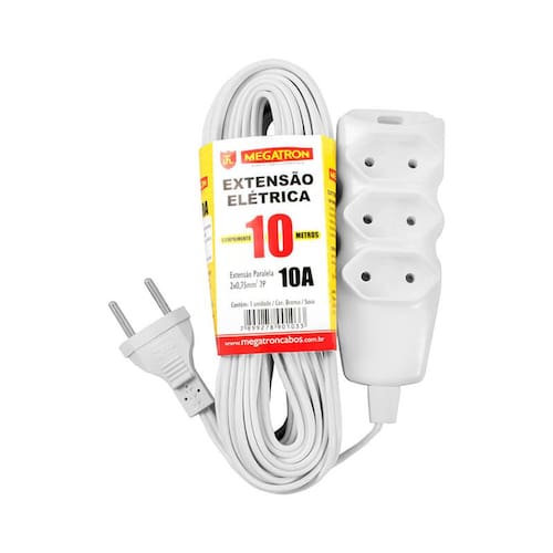 3. Qual é o comprimento do cabo dessa extensão? - O cabo dessa extensão tem 10 metros de comprimento, proporcionando maior alcance e liberdade na hora de ligar seus aparelhos.