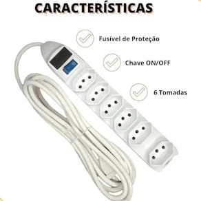 No conteúdo da embalagem, você encontrará 1 extensão de 6 tomadas.