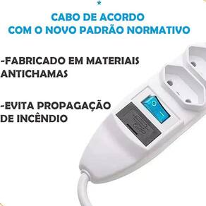 A extensão elétrica acompanha um cabo de 1,5 metros de comprimento, o que proporciona uma maior flexibilidade na hora de posicionar os aparelhos.
