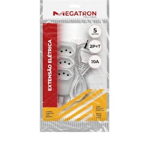 Extensao Cabo 2p T Pp Plano 3x0,75 5m Branca Apresentamos as extensões elétricas 2P T, produtos de qualidade e que garantem segurança aos usuários, atendendo ao novo padrão brasileiro de plugues e tomadas (NBR 14136). Este produto é produzido com cabo PP, que as torna ainda mais resistentes. Modelo: Extensão Elétrica Megatron 2P T; Amperagem: 10A / 250V; Cabo: PP; Espessura do Cabo: 0,75mm; Número de tomadas: 03; Ideal para: Uso residencial e comercial; Ean: 7899278904416