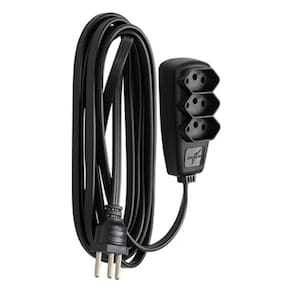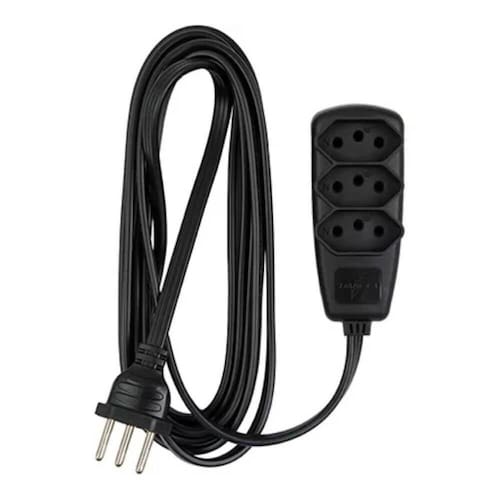 PRINCIPAIS CARACTERÍSTICAS: Cor: Preto Marca: Daneva 3 Tomadas Tensão Bivolt 110V, 220V Entrada e saída 2P Amperagem Máxima do Conjunto: 10A Comprimento do cabo: 10 metros