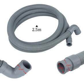 Extensão de mangueira de drenagem para máquina de lavar 2,5 m - Kit de mangueira de drenagem para máquina de lavar: o kit de mangueira de drenagem inclui uma mangueira de 2,5 m, duas braçadeiras e um suporte de mangueira de drenagem de arruela em U, adequado para a maioria das máquinas de lavar de carregamento frontal. - Material: Feita de polipropileno de grau industrial, esta mangueira é muito durável e pode ser reaproveitada por muito tempo. - Diâmetro: ID: 0,79" (20 mm)/OD: 23 mm (0,9'') -top, ID: 23 mm (0,9 pol.) / OD: 27 mm (1,06") - extremidade. Preste atenção às dimensões do seu dispositivo para que o tubo de drenagem se encaixe perfeitamente. - Sem vazamento: a mangueira tem flexibilidade especial e pode ser facilmente dobrada à vontade sem causar vazamentos. - Amplamente utilizado: Conexão direta ao tubo de drenagem e tubo de esgoto, adequado para máquina de lavar e lava-louças de todas as marcas comuns (por exemplo, Miele, Bosch, Beko, Siemens, Bauknecht, AEG, Gorenje).