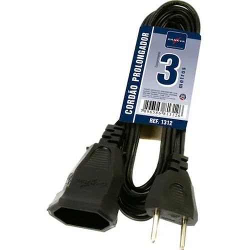 Extensao daneva prolongado fio 2,0 x 0,75mm 3m emb. Contem 1 un. Cor: preto Extensão - cordão prolongador macho/fêmea Cordão pl 2x0,75mm² 2p 10a Daneva = máxima qualidade e segurança em materiais elétricos Este produto está equipado com um cordão . Permite o prolongamento Dos cabos com plugues de 2 polos, sendo ideal para escritórios e ambientes Residenciais. Todos os cabos são certificados conforme nbr 13249 e os plugues e tomadas Ean: 7896586813126