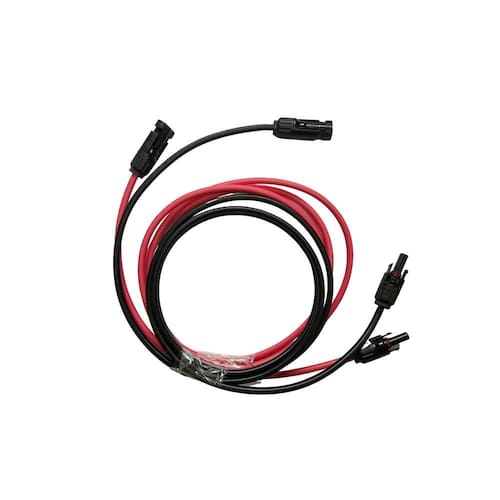 Extensão de cabo solar- 2 metros Extensão de cabos para as placas solares, composta por 2 metros de cabo solar 6mm preto e 2 metros de cabo solar 6mm vermelho, onde cada cabo possui um terminal mc4 macho e um terminal mc4 fêmea. A extensão pode ser utilizada para a conexão entre as placas quando estão distântes entre si e o tamanho do cabo padrão de fábrica não é suficiente para realizar a ligação. Marca: 60Hz