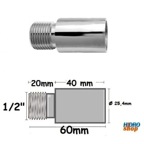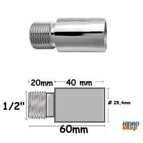 Extensão de Latão Cromado de 1/2 x 40mm Para Torneiras e Chuveiros
