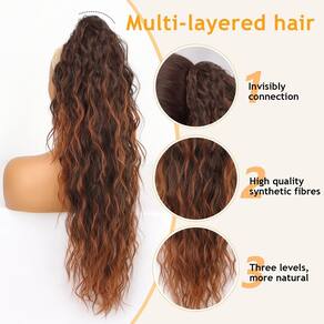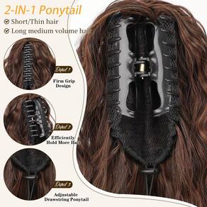 ORSUNCER Extensão de rabo de cavalo com garra de 76,2 cm, extensões de cabelo sintético fofo e natural para mulheres - Fixação confortável e segura: nossos rabos de cavalo são projetados com uma extensão sem costura que combina perfeitamente com o seu cabelo e oferece uma fixação segura. A garra tem alta elasticidade, é muito confortável de usar. Você pode ter certeza de que não escorregará ou afrouxará durante todo o dia - Introdução ao material: nossas extensões de rabo de cavalo são feitas de fibras sintéticas premium. Segura, confortável e bonita ao toque com suas mãos macias como seu cabelo. Comprimento: 76 cm ondulado Peso: 160 g - FÁCIL DE USAR: Com nossa extensão de rabo de cavalo, tudo o que você faz é simplesmente abrir o pente de garra na parte superior do rabo de cavalo e prender a extensão do cabelo sobre seu próprio coque ou rabo de cavalo. É preciso um passo para colocar nossa extensão de rabo de cavalo em seu cabelo e é fácil - Duas maneiras de usar: pode ser um rabo de cavalo ou um rabo de cavalo com cordão. O rabo de cavalo com clipe pode conter pequenas e médias quantidades de cabelo e é utilizado com segurança, e o rabo de cavalo com cordão pode conter mais cabelo - Acessório de cabelo versátil: um rabo de cavalo é um penteado preferido, adequado para qualquer ocasião. Se você está procurando um visual casual ou formal, o rabo de cavalo é um acessório de cabelo versátil que pode ser estilizado de diferentes maneiras para combinar com sua roupa
