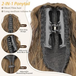 - DUAS MANEIRAS DE USAR: pode ser um rabo de cavalo com clipe ou um rabo de cavalo com cordão. O rabo de cavalo com clipe pode segurar pequenas e médias quantidades de cabelo e é utilizado com segurança, e o rabo de cavalo com cordão pode segurar mais cabelo
