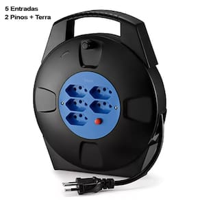 O Carretel da Elgin também possui 5 tomadas, permitindo a conexão de múltiplos aparelhos simultaneamente. Isso o torna extremamente versátil e útil em diversas situações, seja para conectar seu computador e periféricos, equipamentos de som e imagem, eletrodomésticos, entre outros.