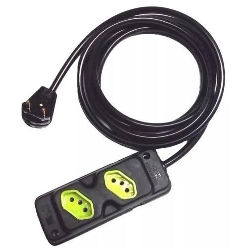 Descrição Extensão Com Tomada em Barra Dupla 20A reforçada CABO PP 2x1,5mm Plug macho reforçado 10a com prensa cabo Comprimento da Extensão 20 metros Todas as extensões são fabricadas com cabo pp normatizado e certificado pelo Imetro