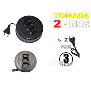 Extensão Móvel Redonda 3 Metros 3 Tomadas