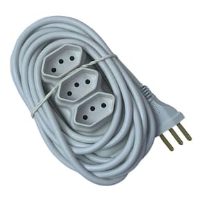 Extensão elétrica tripolar cor branca 3 metros Extensão multiuso tripolar branca - 3 metros