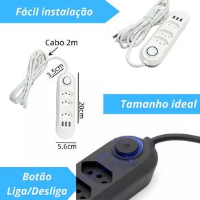 Extensão elétrica ultra resistente com 3 tomadas 3usb bivolt Descrição do anúncio: A régua elétrica com 3 tomadas e 3 usb bivolt é a solução ideal para quem busca praticidade e segurança no dia a dia. Com três tomadas universais e três portas usb 5v 2.1a , esta extensão oferece carregamento rápido e eficiente para diversos dispositivos. Seu cabo de 2 metros proporciona maior alcance, enquanto o design compacto e leve facilita o transporte e o uso em diferentes ambientes. Ideal para carregar celulares, alto-falantes usb, ventiladores usb e outros produtos térmicos usb, essa régua é perfeita para uso doméstico e pequenos escritórios. Conteúdo da embalagem: 01 x régua elétrica com 3 tomadas e 3 usb Características: 3 tomadas elétricas espaçadas, permitindo acomodar plugues grandes sem obstruções 3 portas usb para carregar dispositivos móveis como smartphones e tablets Design moderno e funcional, compacto e leve, fácil de transportar Proteção contra surtos elétricos e sobrecargas, garantindo a segurança dos aparelhos conectados Compatível com redes elétricas 127v/220v, funcionando como bivolt automático Fusível de proteção integrado para evitar danos em caso de picos de energia Cabo de extensão de 2 metros para maior alcance Especificações: Modelo: filtro de linha com 3 tomadas e 3 usb Material: plástico resistente Cor: branca transparente Compatibilidade: ideal para uso doméstico e pequenos escritórios Dimensões aproximadas: 30 cm de comprimento x 5 cm de largura x 3 cm de altura Principais perguntas sobre o produto e respostas: O produto é bivolt Sim, o produto é compatível com redes elétricas de 127v e 220v, funcionando como bivolt automático. Qual é o comprimento do cabo de extensão O cabo de extensão tem 2 metros de comprimento, proporcionando maior alcance. As portas usb são rápidas Sim, as portas usb têm uma saída de 5v 2.1a, garantindo carregamento rápido e eficiente. Esta régua possui proteção contra surtos elétricos Sim, o produto possui proteção contra surtos elétricos e sobrecargas, garantindo a segurança dos aparelhos conectados. Pode ser Utilizado para carregar dispositivos usb como smartphones e tablets Sim, as três portas usb são ideais para carregar dispositivos móveis como smartphones e tablets. O produto é leve e fácil de transportar Sim, o design compacto e leve torna a régua fácil de transportar e usar em diferentes ambientes. 4o Marca: Não Informado Ean: 7894952966445