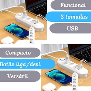 Extensão elétrica ultra resistente com 3 tomadas 3usb bivolt Descrição do anúncio: A régua elétrica com 3 tomadas e 3 usb bivolt é a solução ideal para quem busca praticidade e segurança no dia a dia. Com três tomadas universais e três portas usb 5v 2.1a , esta extensão oferece carregamento rápido e eficiente para diversos dispositivos. Seu cabo de 2 metros proporciona maior alcance, enquanto o design compacto e leve facilita o transporte e o uso em diferentes ambientes. Ideal para carregar celulares, alto-falantes usb, ventiladores usb e outros produtos térmicos usb, essa régua é perfeita para uso doméstico e pequenos escritórios. Conteúdo da embalagem: 01 x régua elétrica com 3 tomadas e 3 usb Características: 3 tomadas elétricas espaçadas, permitindo acomodar plugues grandes sem obstruções 3 portas usb para carregar dispositivos móveis como smartphones e tablets Design moderno e funcional, compacto e leve, fácil de transportar Proteção contra surtos elétricos e sobrecargas, garantindo a segurança dos aparelhos conectados Compatível com redes elétricas 127v/220v, funcionando como bivolt automático Fusível de proteção integrado para evitar danos em caso de picos de energia Cabo de extensão de 2 metros para maior alcance Especificações: Modelo: filtro de linha com 3 tomadas e 3 usb Material: plástico resistente Cor: branca transparente Compatibilidade: ideal para uso doméstico e pequenos escritórios Dimensões aproximadas: 30 cm de comprimento x 5 cm de largura x 3 cm de altura Principais perguntas sobre o produto e respostas: O produto é bivolt Sim, o produto é compatível com redes elétricas de 127v e 220v, funcionando como bivolt automático. Qual é o comprimento do cabo de extensão O cabo de extensão tem 2 metros de comprimento, proporcionando maior alcance. As portas usb são rápidas Sim, as portas usb têm uma saída de 5v 2.1a, garantindo carregamento rápido e eficiente. Esta régua possui proteção contra surtos elétricos Sim, o produto possui proteção contra surtos elétricos e sobrecargas, garantindo a segurança dos aparelhos conectados. Pode ser Utilizado para carregar dispositivos usb como smartphones e tablets Sim, as três portas usb são ideais para carregar dispositivos móveis como smartphones e tablets. O produto é leve e fácil de transportar Sim, o design compacto e leve torna a régua fácil de transportar e usar em diferentes ambientes. 4o Marca: Não Informado